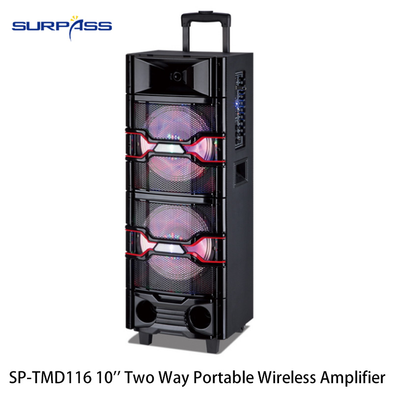 10'' Two Way Portable Wireless Amplifier, Trolley Speaker, Rechargeable with Multi-Functions